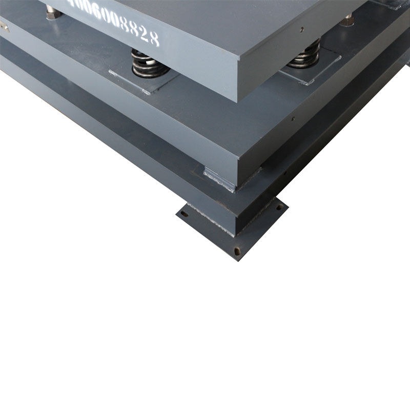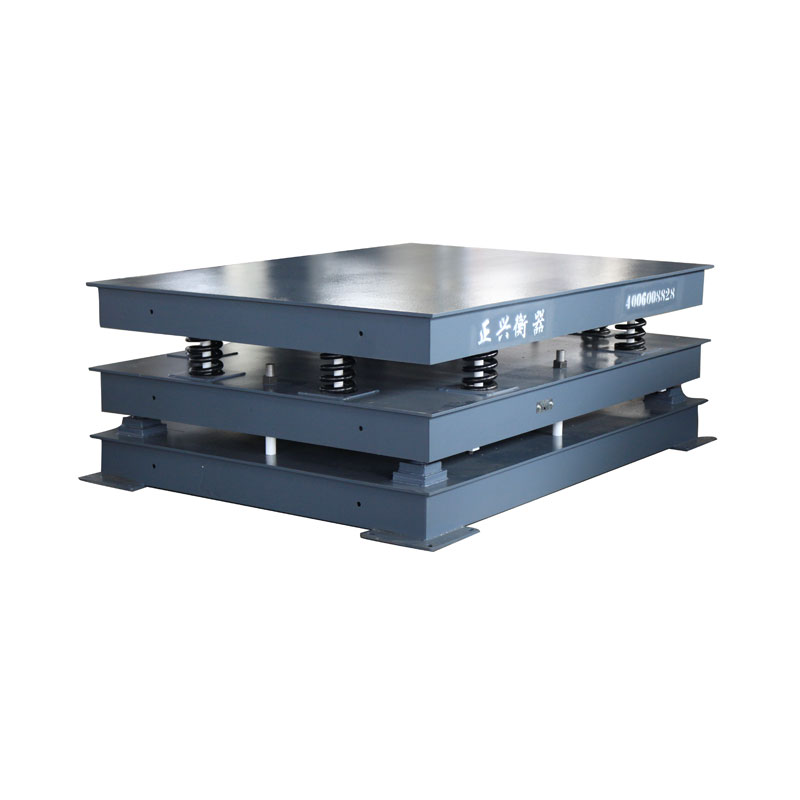通過八根導柱,使八個高精度螺旋壓縮彈簧預緊結合在一起,實現緩沖,抗沖擊力強。在有強烈沖擊的載荷稱重時,瞬間沖擊力會遠大于衡器的最大稱重,此時使用緩沖秤能有效降低被稱重的沖擊力,大大延長秤體及傳感器的使用壽命。